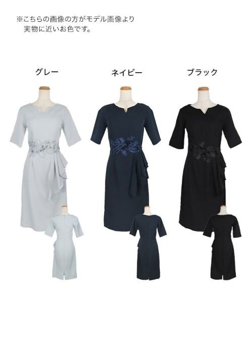 五分袖立体フラワーレースミディアムパーティードレスのカラーバリエーション