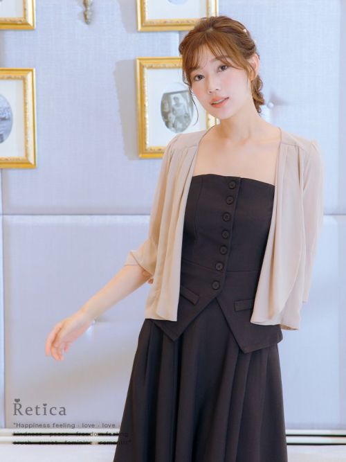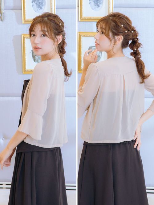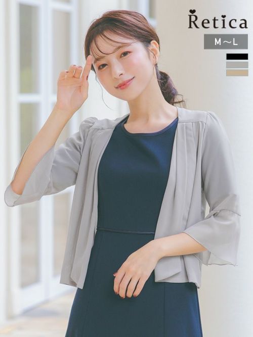 4. [SALE] タックドレープシフォンベルスリーブ七分袖ボレロ (Mサイズ/Lサイズ)
