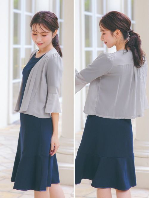 タックドレープシフォンベルスリーブ七分袖ボレロの商品詳細1