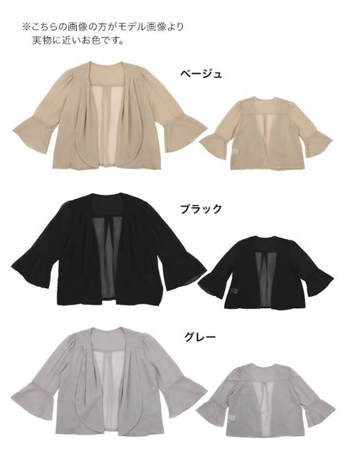 3. [SALE] タックドレープシフォンベルスリーブ七分袖ボレロ (Mサイズ/Lサイズ)