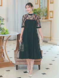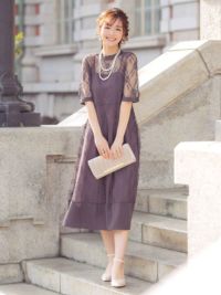 レーススリーブ&ミモレ丈で気になる体型もカバーでき、