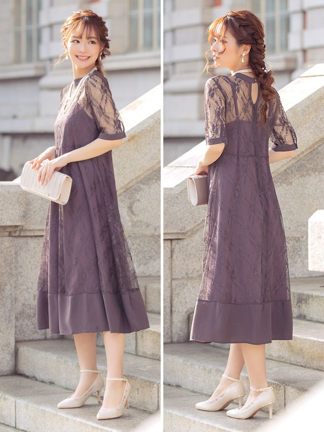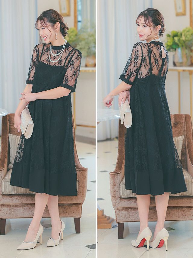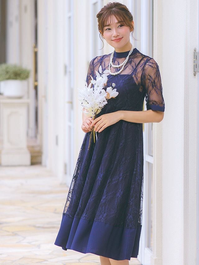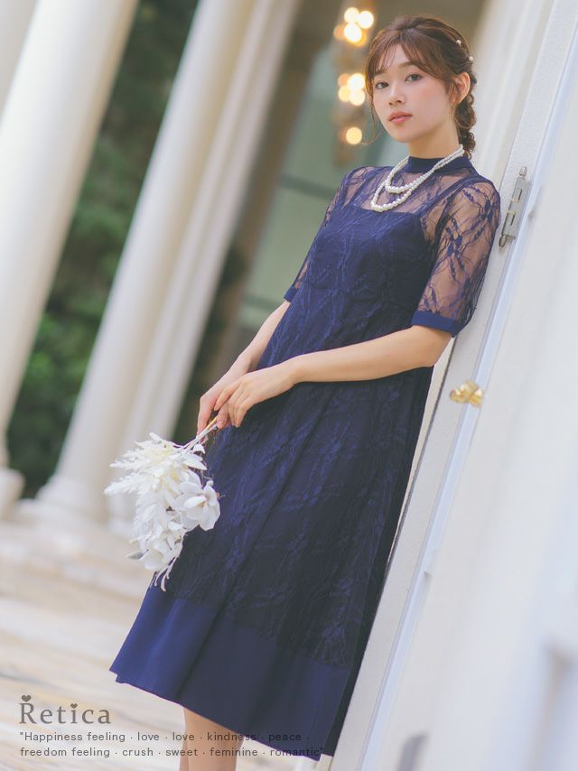レース素材の透け感が大人らしい印象を与えるドレス♪