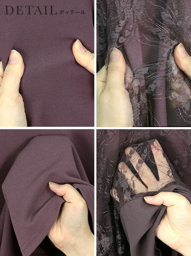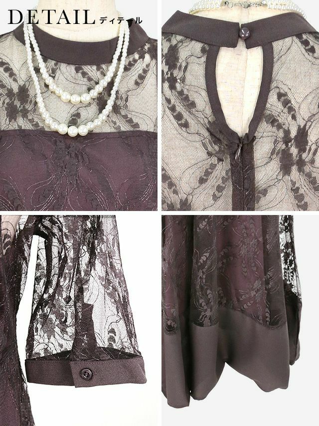 レース切替半袖パールネックレス付きワンピースパーティードレスのイメージ画像3