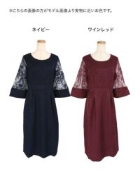 総柄袖レース切り替えワンピースパーティードレスのカラーバリエーション