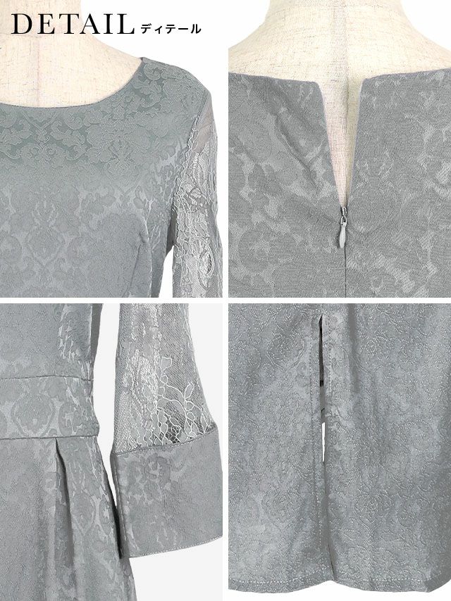 総柄袖レース切り替えワンピースパーティードレスの商品詳細3
