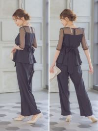 4. [SALE] シースルー袖ビスチェ風デザインパンツセットアップパーティードレス (Sサイズ~3Lサイズ)