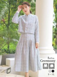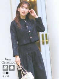 パールボタンショート丈ジャケット×ロングスカート2ピースセットスーツのサイズ表