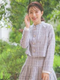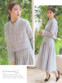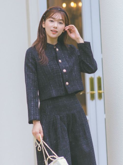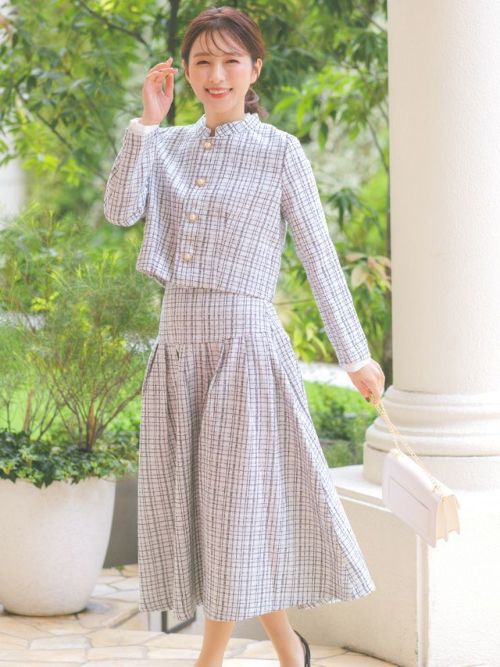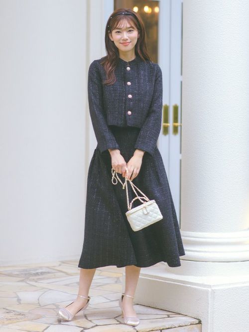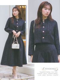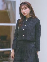 パールボタンショート丈ジャケット×ロングスカート2ピースセットスーツのジャケットありイメージ画像