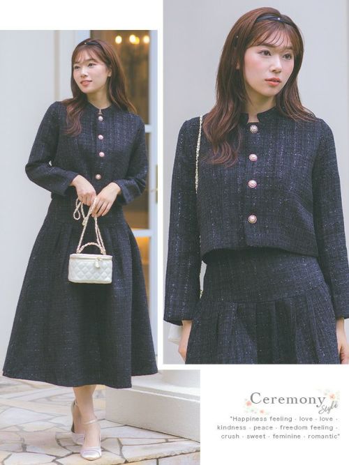 パールボタンショート丈ジャケット×ロングスカート2ピースセットスーツのカラーバリエーション
