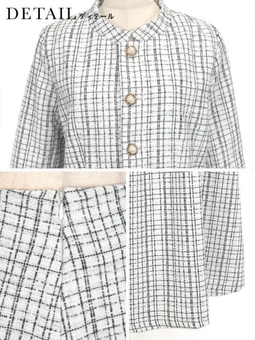 パールボタンショート丈ジャケット×ロングスカート2ピースセットスーツの商品詳細1