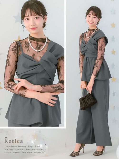 アシンメトリークロスデザインペプラムセットアップパンツドレスのスペック表