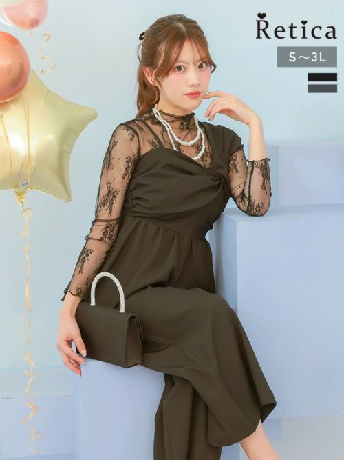 お洒落なアシンメトリー×レース♡ ワンショルダーねじれデザイン長袖レースパンツスタイルセットアップ(Sサイズ~3Lサイズ)