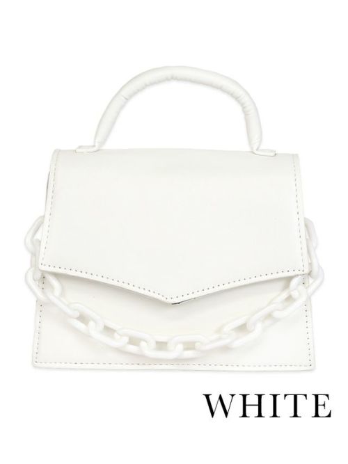 コーデのアクセントに♪ チェーンアクセント2wayハンドバッグ(ブラック/ホワイト)