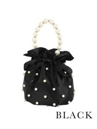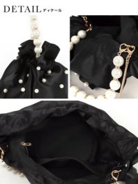 パールがかわいい巾着バッグ♪ パール装飾2Way巾着ミニバッグ(ブラック)