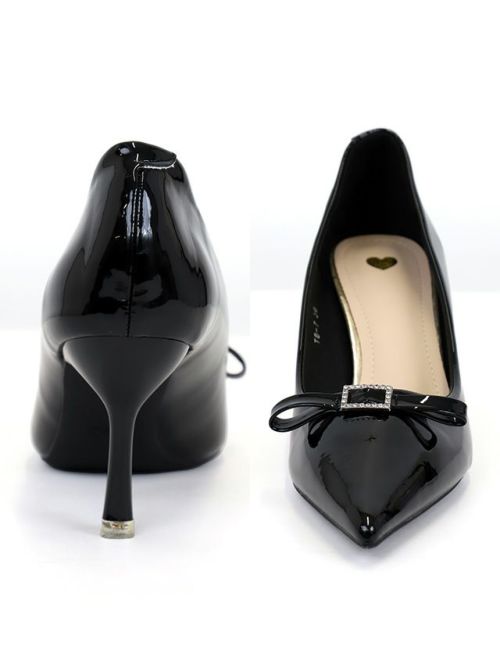 3. センターリボンエナメルポインテッドトゥパンプス(ブラック)
