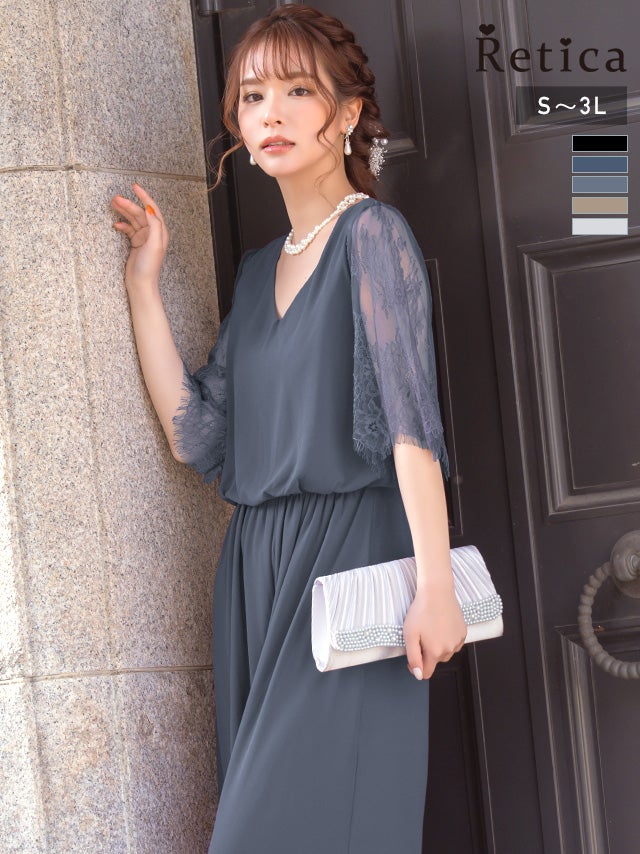 ワンカラーレース五部袖ワイドパンツプチプラパーティードレスのカラーバリエーション