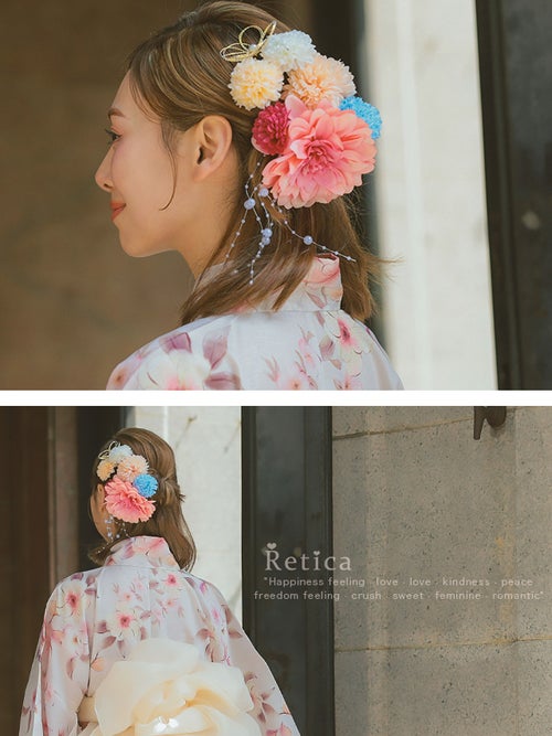 浴衣小物 レースリボン付きニュアンスフラワーヘアアクセサリー8点セットのメイン画像 浴衣小物 レースリボン付きニュアンスフラワーヘアアクセサリー8点セットのイメージ画像 浴衣小物 レースリボン付きニュアンスフラワーヘアアクセサリー8点セットのカラーバリエーション1 浴衣小物 レースリボン付きニュアンスフラワーヘアアクセサリー8点セットカラーバリエーション2