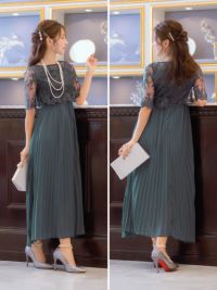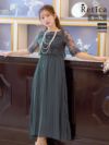 3. [SALE] 花柄チュール刺繍五分袖プリーツロングスカートパーティードレス (Sサイズ~3Lサイズ)