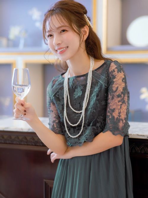 デコルテから袖にかけてのシースルーが女性らしさを感じさせ、