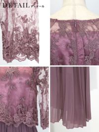 花柄チュール刺繍五分袖プリーツロングスカートパーティードレスのイメージ画像3