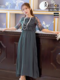 4. [SALE] フラワー刺繍レース×プリーツ切り替えミモレ丈パーティードレス (Sサイズ~3Lサイズ)
