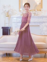 刺繍レース×プリーツ切り替えミモレ丈パーティードレスのイメージ画像1