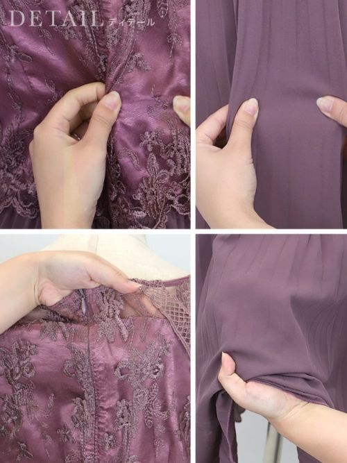 刺繍レース×プリーツ切り替えミモレ丈パーティードレスの商品詳細2