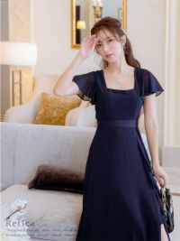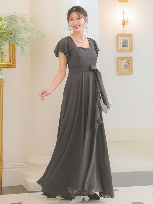 3. スクエアネックスリットロング丈パーティードレス(Sサイズ~4Lサイズ)
