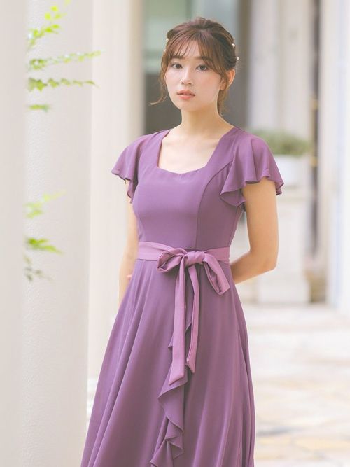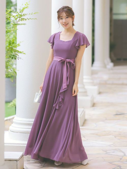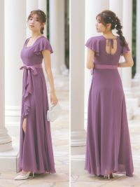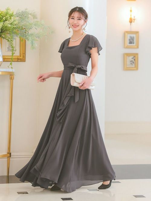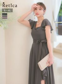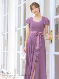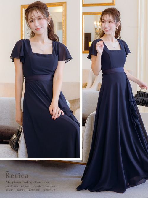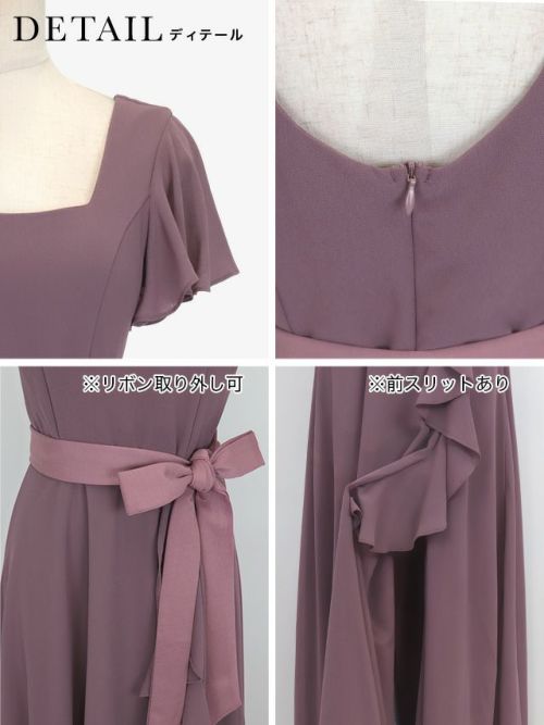 4. スクエアネックスリットロング丈パーティードレス(Sサイズ~4Lサイズ)