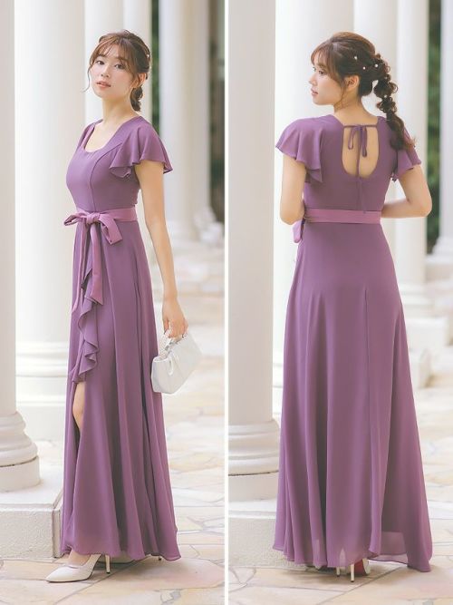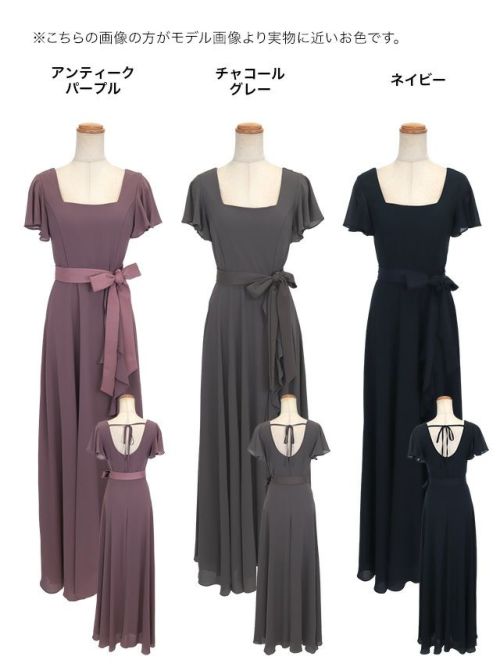 スクエアネックスリットロング丈パーティードレスのカラーバリエーション