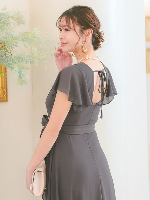 スクエアネックと背中部分が大きく開いたデザインのドレス