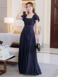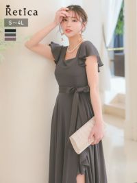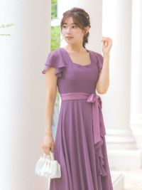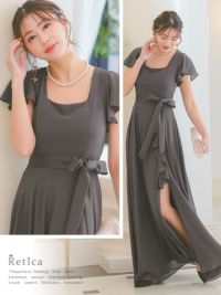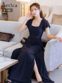 3. フリルスリーブスリット入りロング丈パーティードレス(Sサイズ~4Lサイズ)