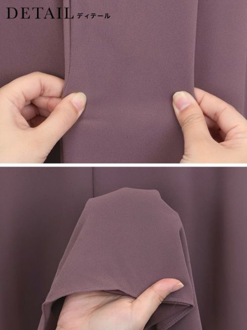 フリルスリーブスリット入りロング丈パーティードレスのスペック表