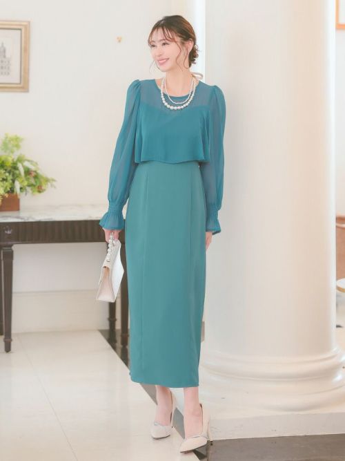 大人上品が詰まった1着♪ パフスリーブバックスリットロングパーティードレス(Sサイズ~3Lサイズ)