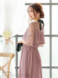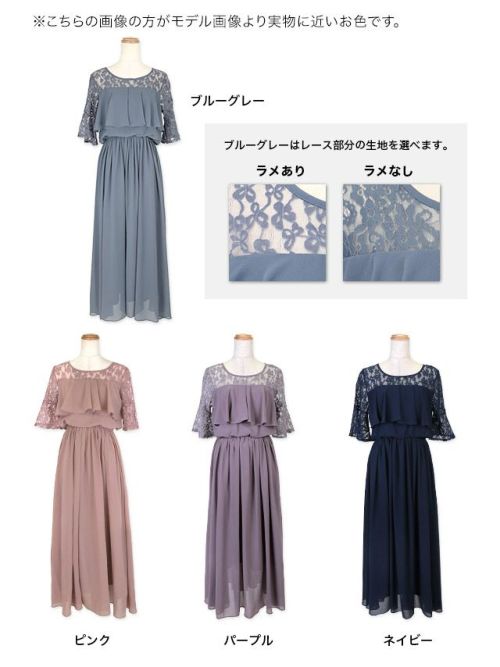 レース袖胸元フリルシフォンフレアロングパーティードレスのカラーバリエーション
