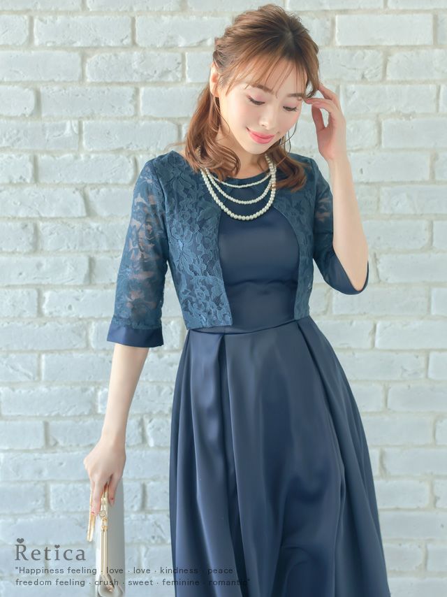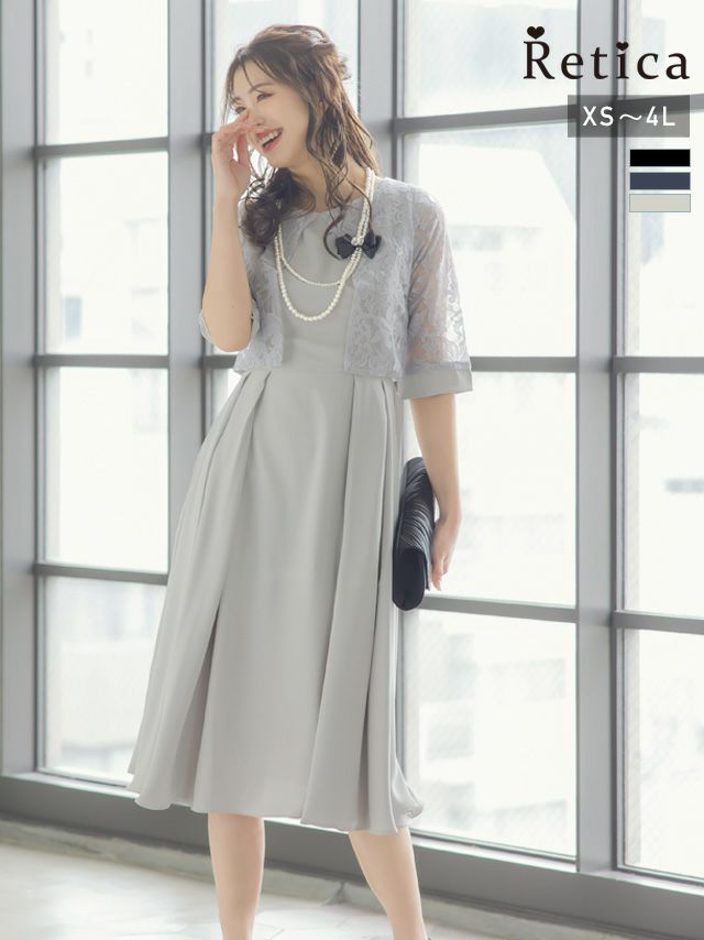 大人の気品漂う一着♪ [SALE] レース切替ボレロ風ミモレ丈ワンピースパーティードレス (XSサイズ~4Lサイズ)