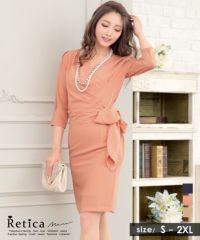 華やかなカラーとデザインが視線を引く♪ カシュクール袖ありウエストリボンタイトスカートプチプラパーティードレス (Sサイズ~XXLサイズ)