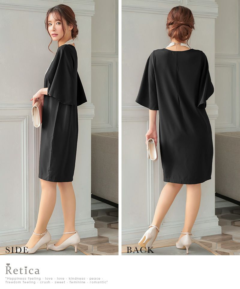 ケープ風フレアスリーブワンカラーパーティードレスの商品詳細