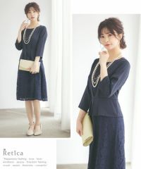 ノーカラーペプラムレーススカートワンピースパーティードレスのイメージ画像1