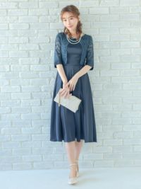 レース七分袖サテンワンピースミモレ丈パーティードレスのカラーバリエーション