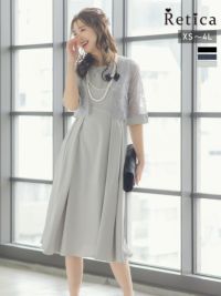 4. [SALE] レース七分袖サテンワンピースミモレ丈パーティードレス (XSサイズ~4Lサイズ)
