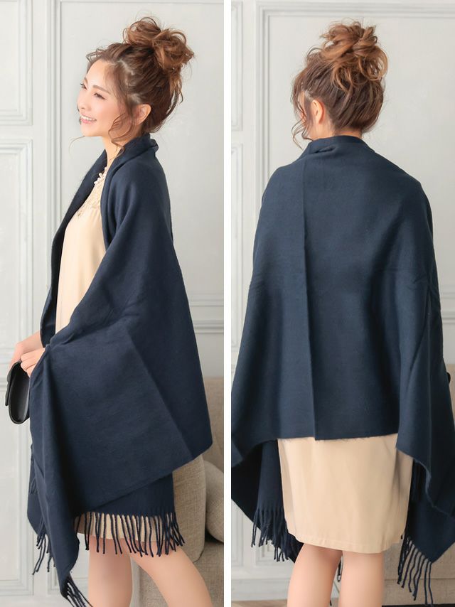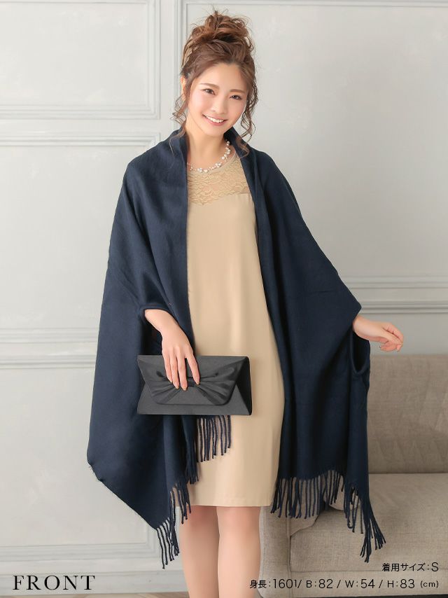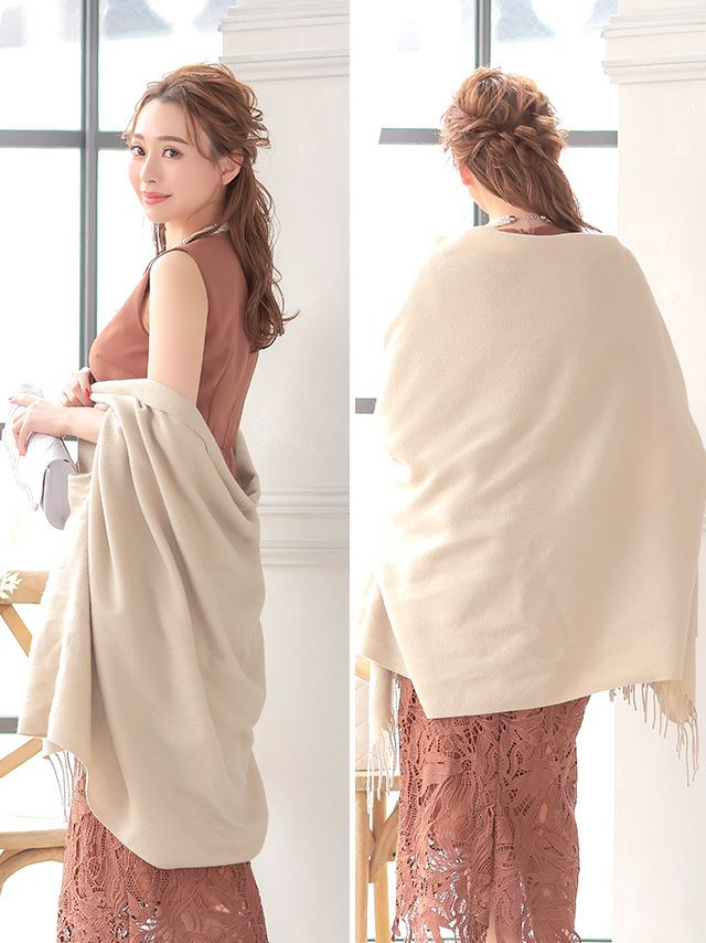 ブラックやネイビーなどの暗めのカラードレスを着用する場合は明るい色のボレロやショールがオススメです。