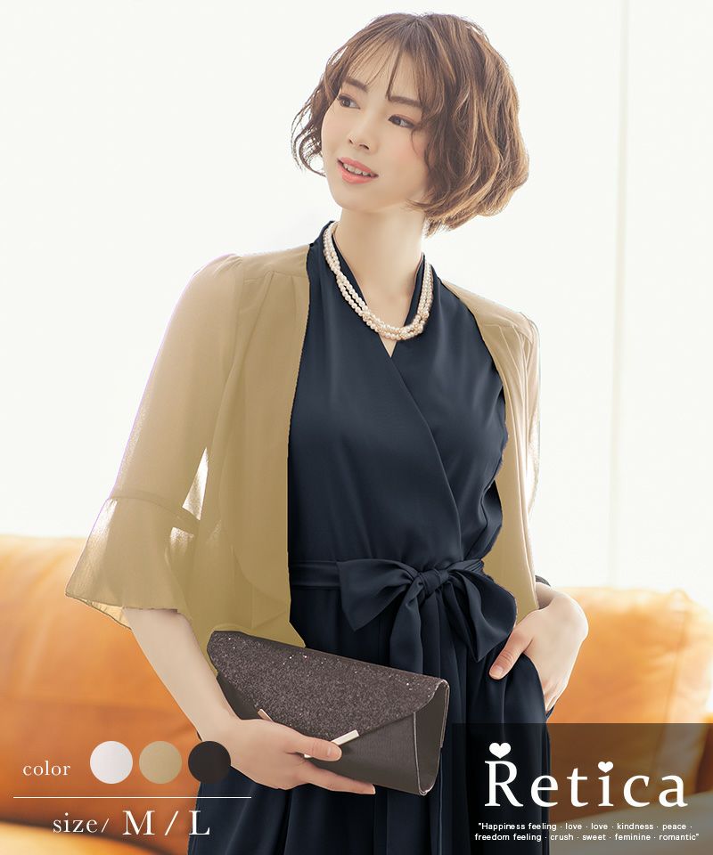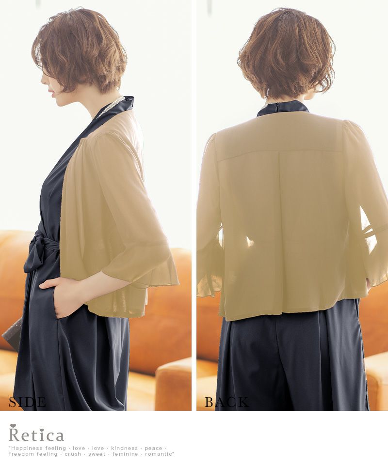 他の画像を見る ふんわり優美な上品ボレロ♪ [SALE] タックドレープシフォンベルスリーブ七分袖ボレロ (Mサイズ/Lサイズ) 通常価格 ¥ 4,290 のところ ¥ 2,145 税込 カートに入れる