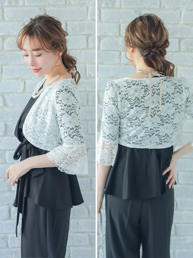 どんなドレスにも合わせやすい♪ [SALE] 総レースフリル袖七分丈ボレロ (Mサイズ/Lサイズ)
