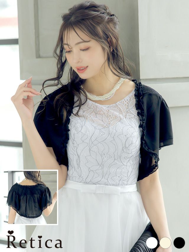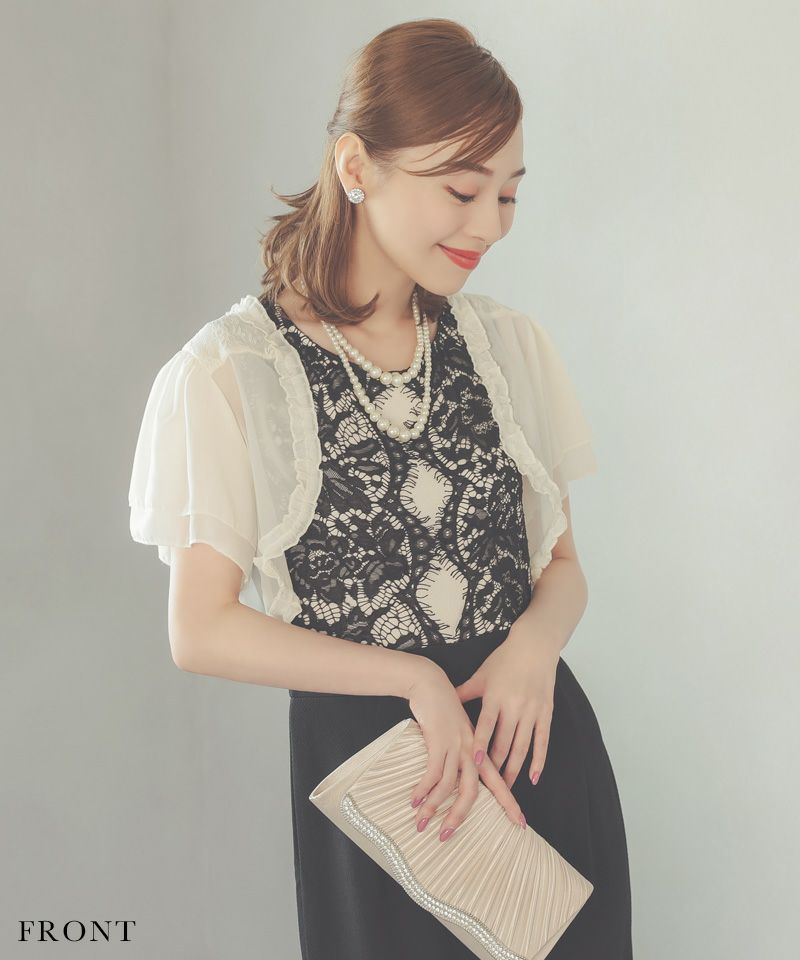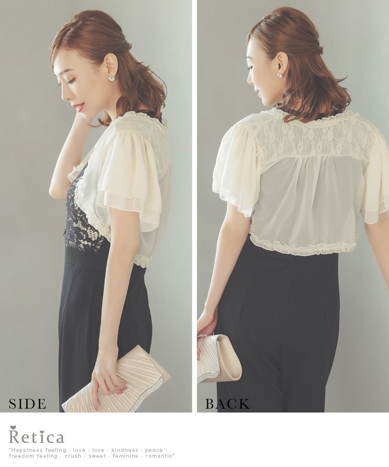 他の画像を見る コーディネートしやすい上品ボレロ☆ [SALE] パフスリーブシフォン切替デザイン半袖ショート丈ボレロ (Mサイズ) 通常価格 ¥ 5,390 のところ ¥ 2,695 税込 カートに入れる