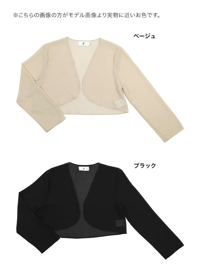 他の画像を見る きちんと感をプラスする、上品ボレロ♪ [SALE] 襟付きロングスリーブボレロジャケット (Mサイズ/Lサイズ) 通常価格 ¥ 6,490 のところ ¥ 3,245 税込 カートに入れる