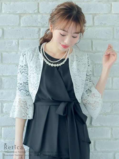総レースフリル袖七分丈ボレロのカラーバリエーション