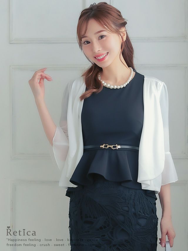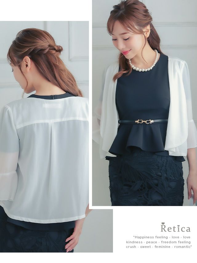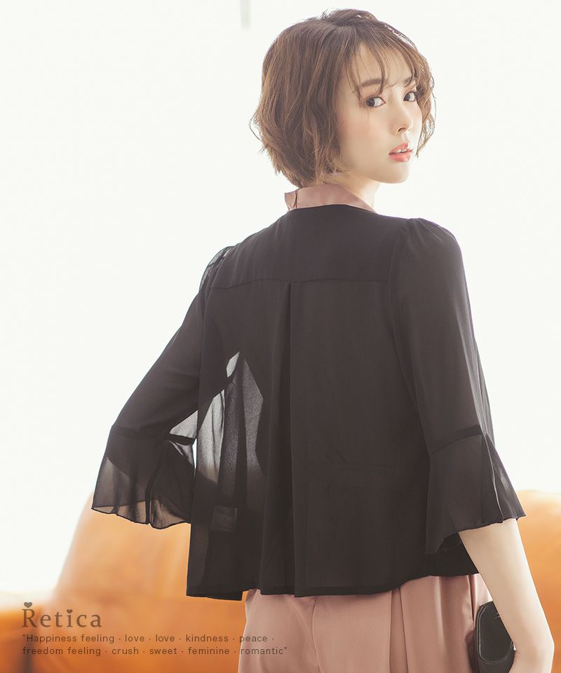 ドレープデザインパフ&ベルスリーブ七分袖シフォンボレロのカラーバリエーション