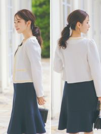 ワッフル素材パール×ノーカラー長袖ジャケットのカラーバリエーション