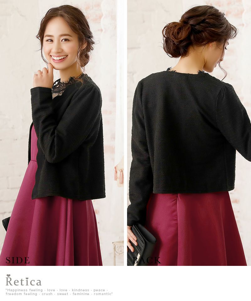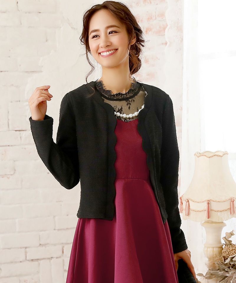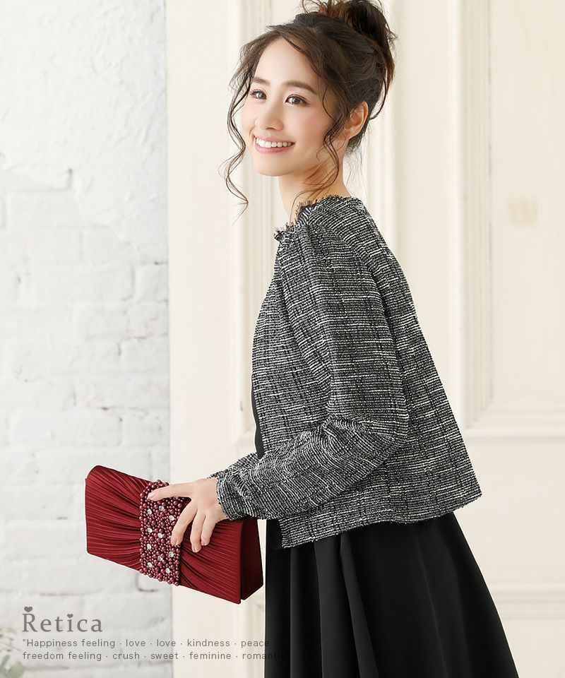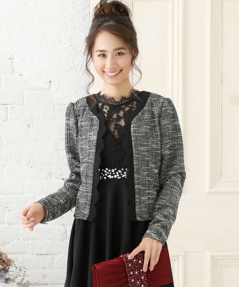 ボレロ 羽織り お呼ばれ ロングスリーブツイードボレロジャケット